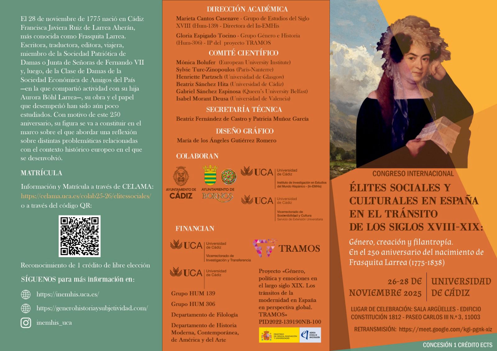 Congreso internacional “Élites sociales y culturales en España en el tránsito de los siglos XVIII-XIX: Género, creación y filantropía. En el 250 aniversario del nacimiento Frasquita Larrea (1775-1838) 28 noviembre 2025